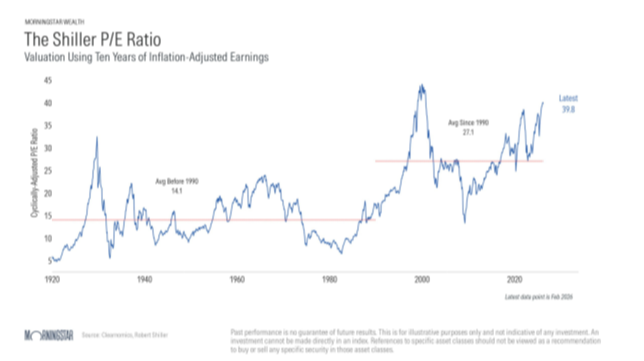 Here is the CAPE—the cyclically adjusted price to earnings ratio, which has only been this high twice before. The last time was 1999, the time before that was 1929—The Great Depression. Prudence calls for caution, wouldn’t you agree?